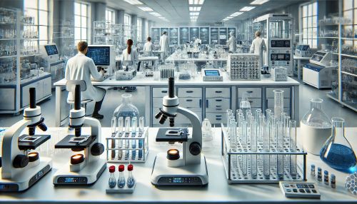 Microscopes, centrifuges, blood analyzers, diagnostic kits, and laboratory consumables.